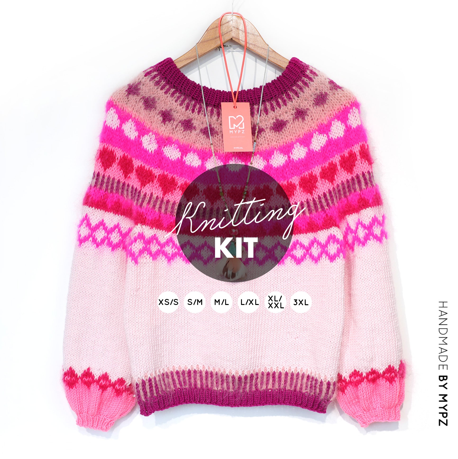 Knitting Kit – MYPZ top-down sweater Pink Hearts No6 (ENG-NL-DE)