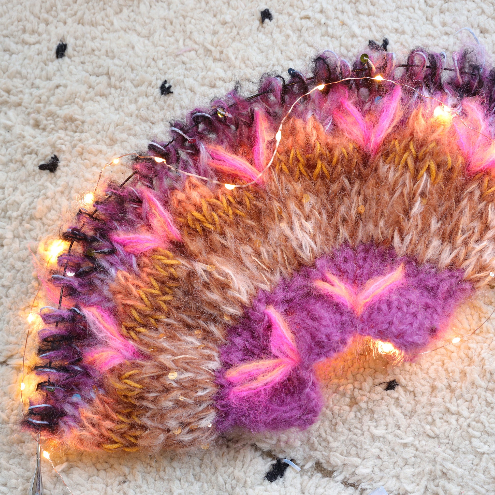 Dieses Design wird mit zwei zusammengehaltenen Fäden von MYPZ Chunky Kidmohair DK gearbeitet.