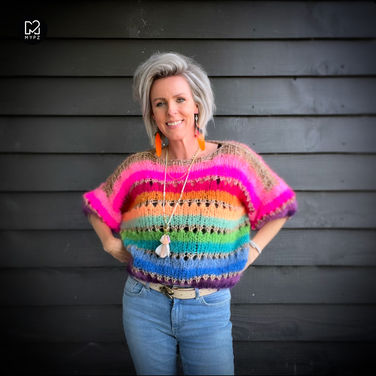This is a handmade knit made by MYPZ in The Netherlands. Each cardigan or sweater is a unique piece and we take a lot of time and care to create these beautiful products. This beautiful sweater is made of a high quality mohair and does not pill. It is very light, warm and comfortable. These brushed yarns may shed a little but after a while, this will subside.
