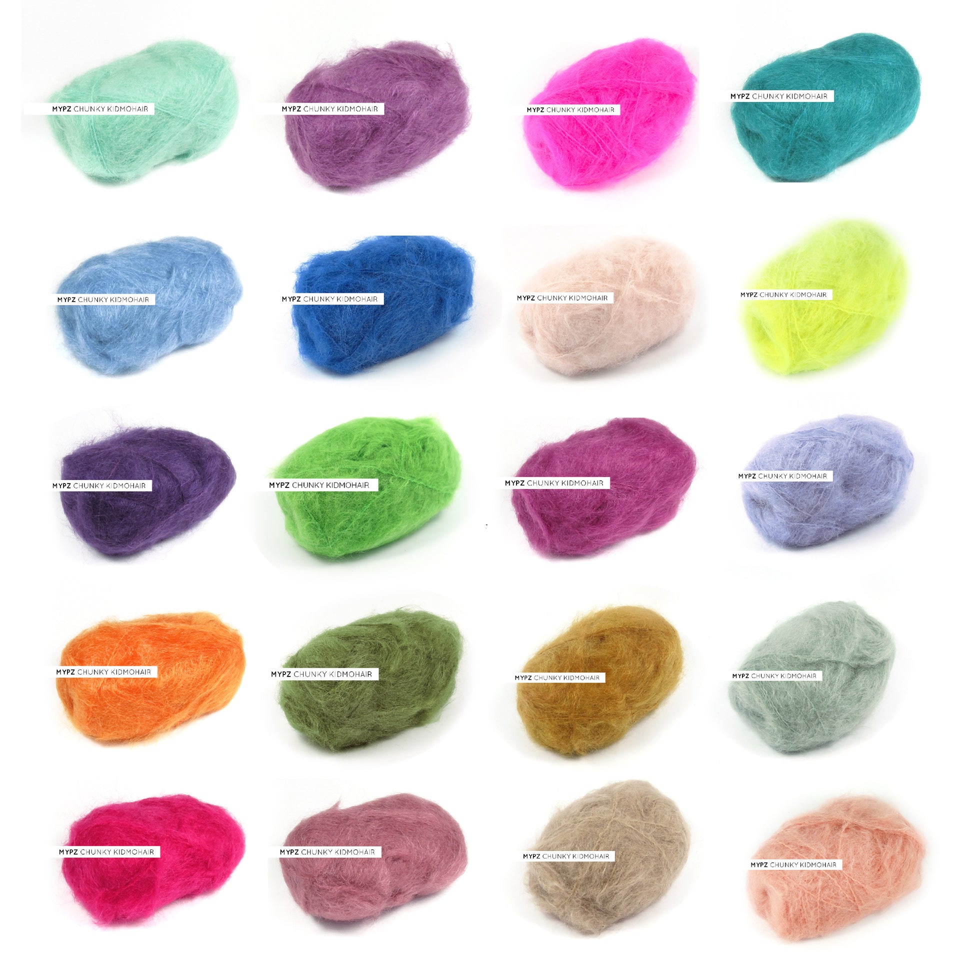 This amazing bundle contents a mix of all the uni colors in the picture of MYPZ chunky kidmohair DK. The number of grams per color varies per bundle but all the colors are included.