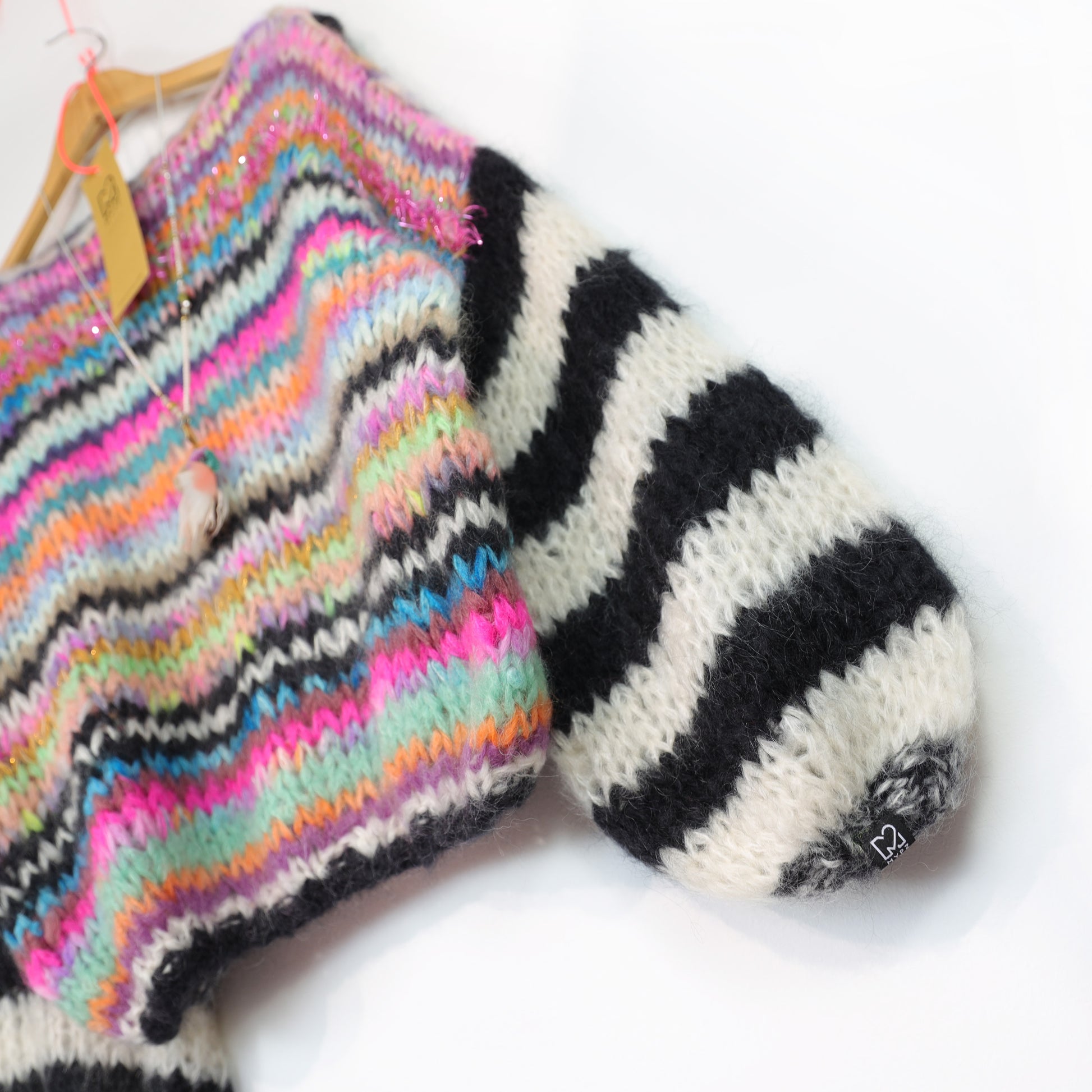 This is a handmade knit made by MYPZ in The Netherlands. Each cardigan or sweater is a unique piece and we take a lot of time and care to create these beautiful products. This beautiful sweater is made of a high quality mohair and does not pill. It is very light, warm and comfortable. These brushed yarns may shed a little but after a while, this will subside.